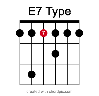 For E type barre chords, simply lift your pinky to turn it into a dominant 7th chord. For a major 7th, reposition your fingers to play the 4th string on the 1st fret. Voila!